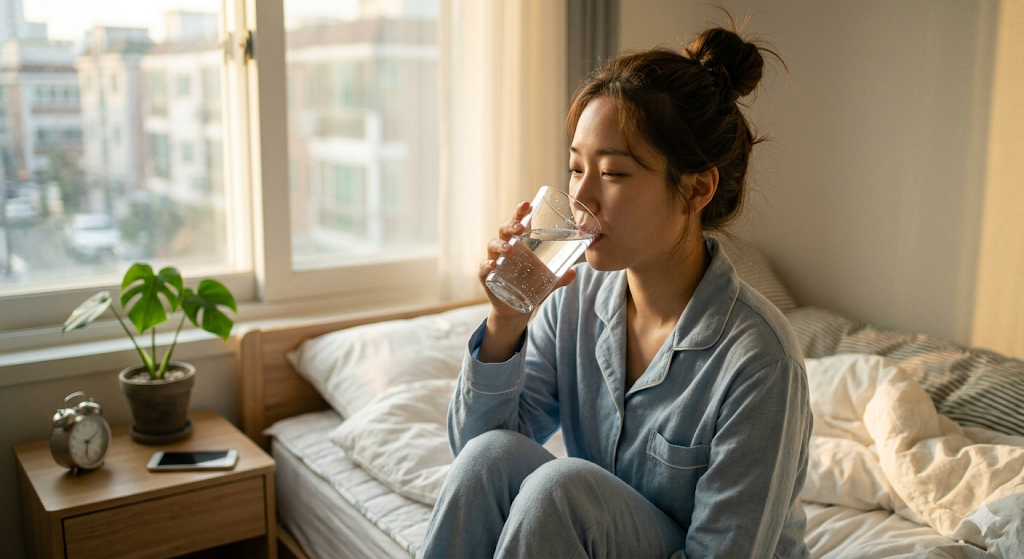 - 아침 기상 후 물 한 잔 마시기